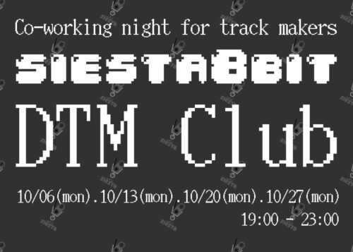 トラックメーカーのみなさま、いつもと場所を変えての制作はいかがでしょうか?作業時間を共有して制作Tipsを交換したり、新たな発想の創出に役立てましょう。グルーヴボックス等のハードウェアも大歓迎です。