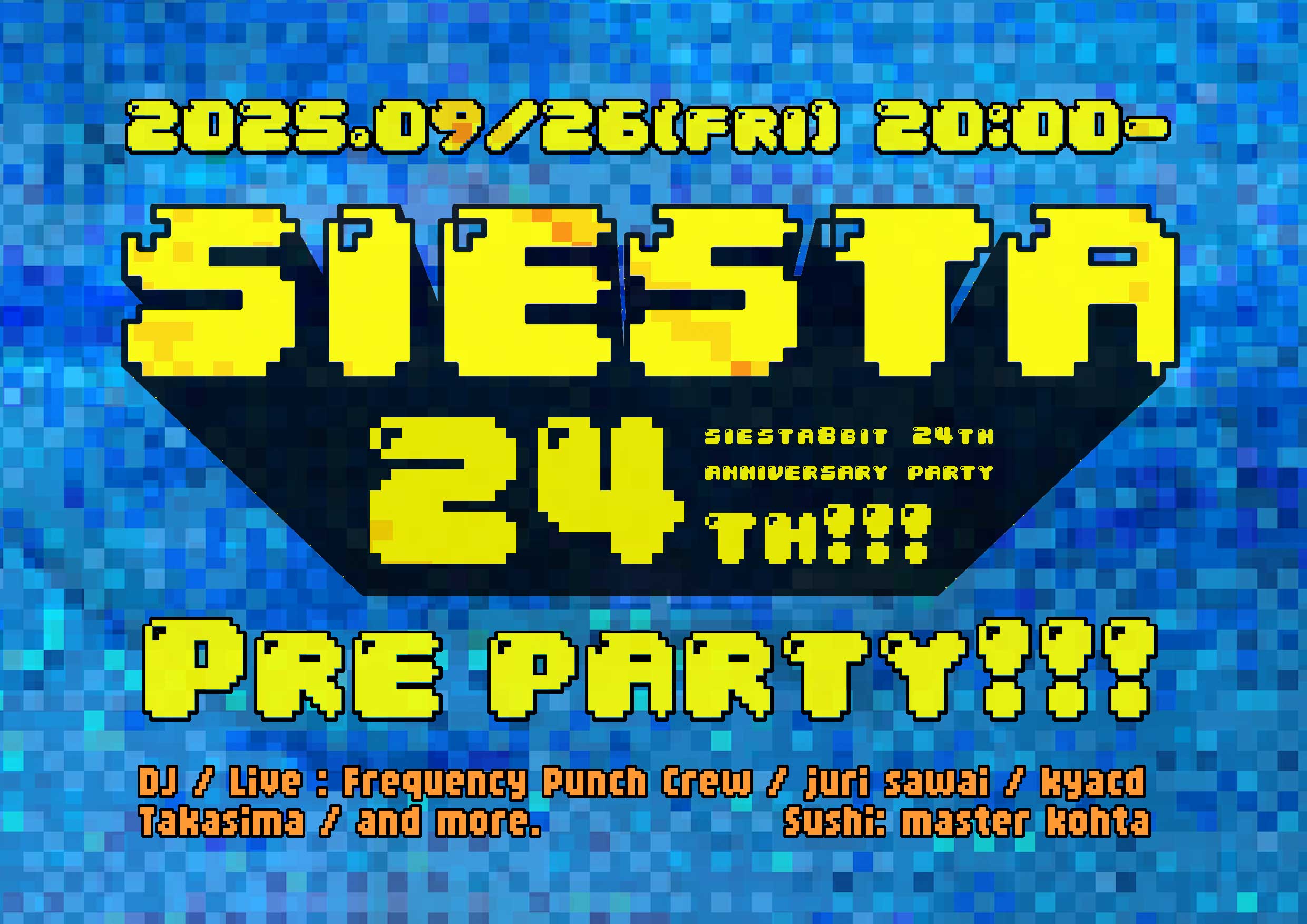 2025.09/26(fri)Siesta 24th!!! Pre Party DJ / LiveFrequency Punch Crewjuri sawaikyacdlinnnnnngco高島and more. Sus… →