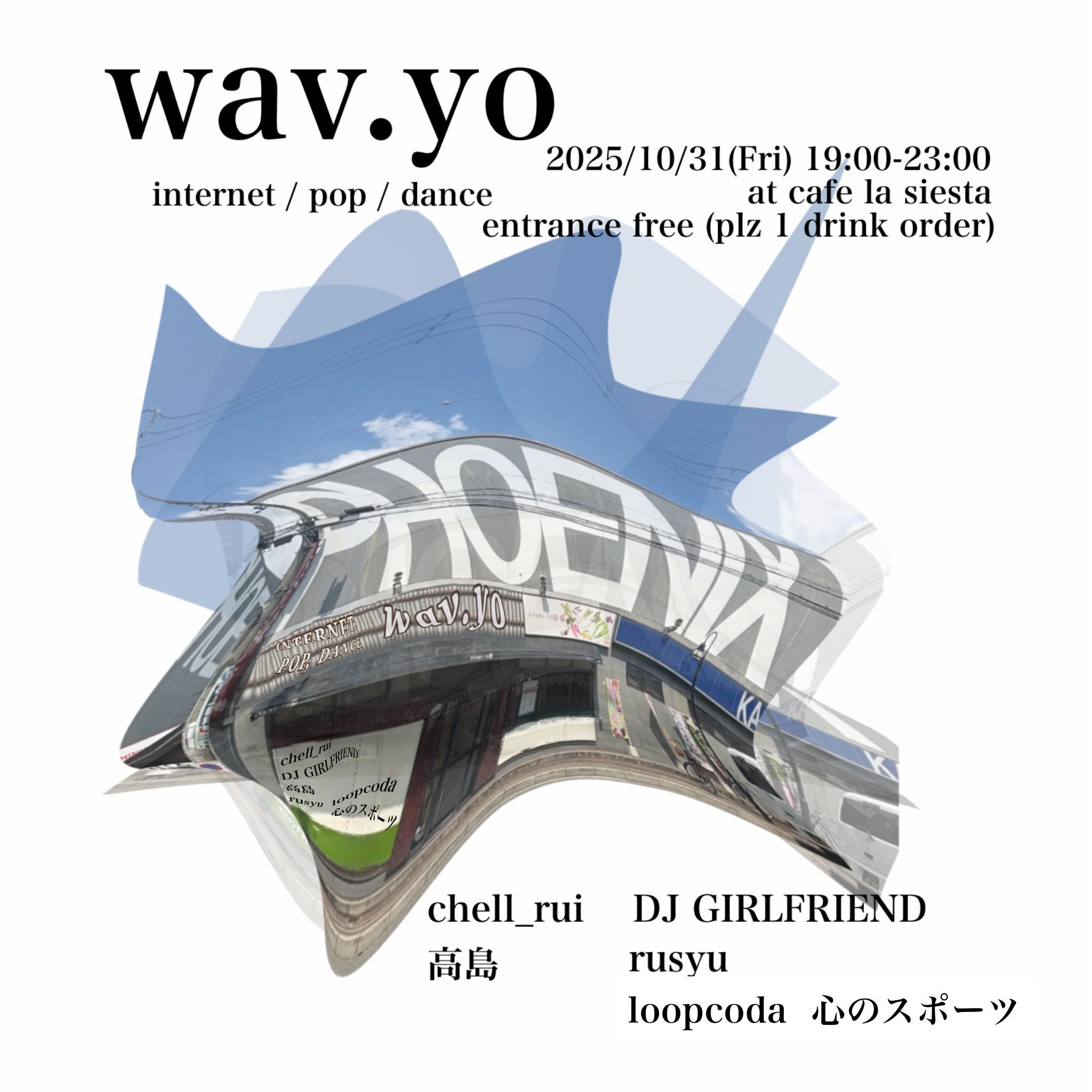 2025.10/31 (fri)wav.yo DJ: chell_rui高島DJ GIRLFRIENDrusyuloopcoda心のスポーツ 19:00-23:00entrance free (plz 1drink) v… →