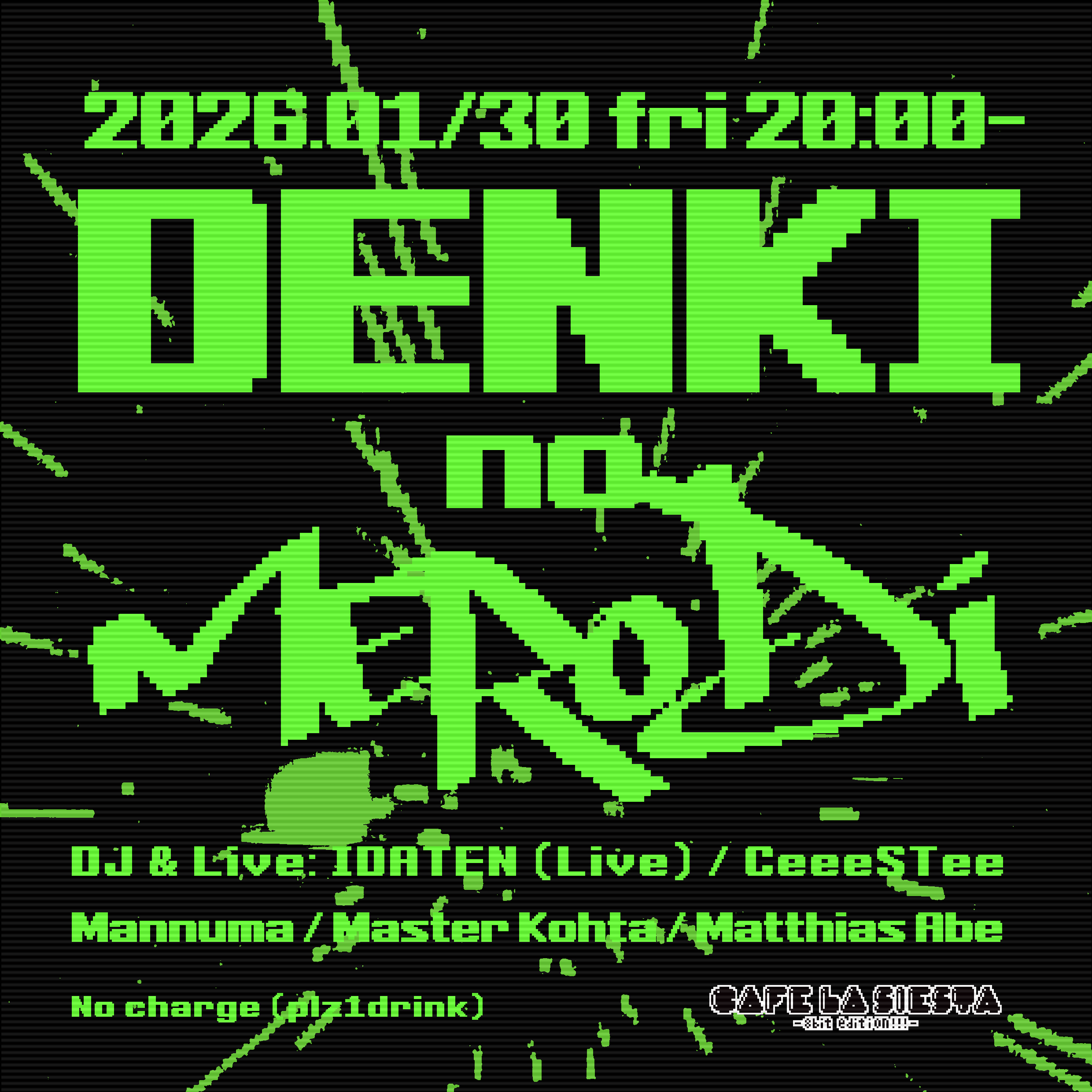 2026.01.30(fri)Denki no Merodi Line up:IDATEN (Live)CeeeSTeeMannumamaster kohtaMatthias Abe 20:00 startno cove… →