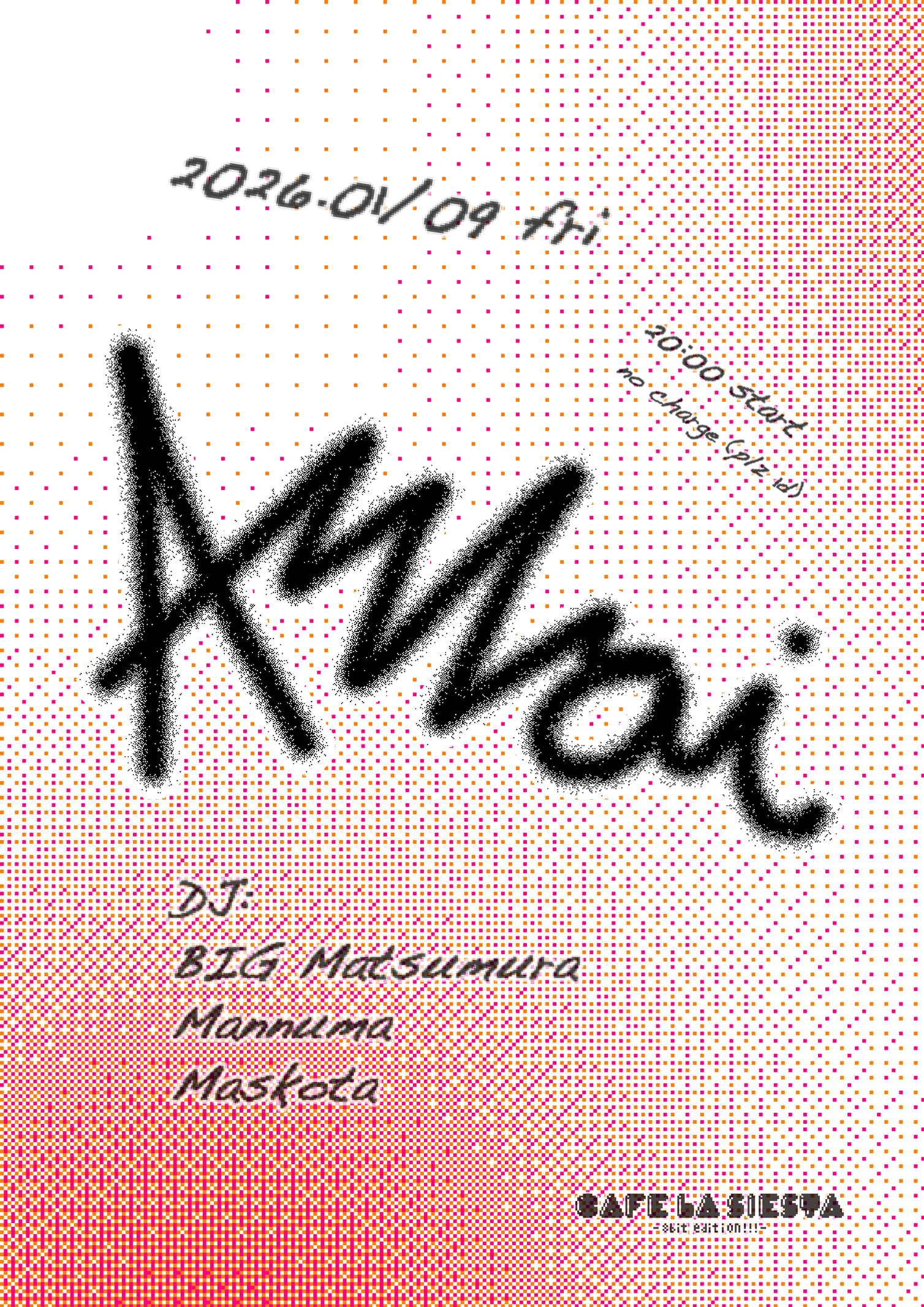 2026.01/09 (fri)Anvai DJ:BIG 松村MannumaMaskota 20:00-no charge (plz 1d) venue: cafe la siesta – 8bit edition!!!… →