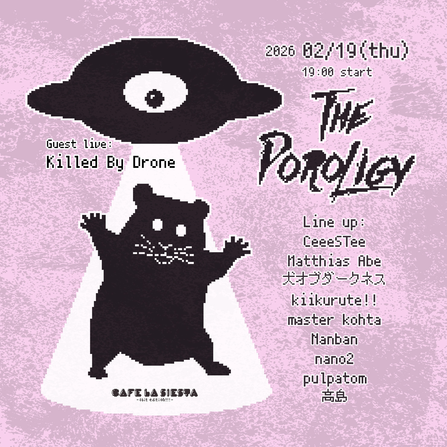 2026.02.19(thu)The Poroligy Line up:Killed By Drone CeeeSTee犬オブダークネスkiikurute!!master kohtaMatthias AbeNanbann… →