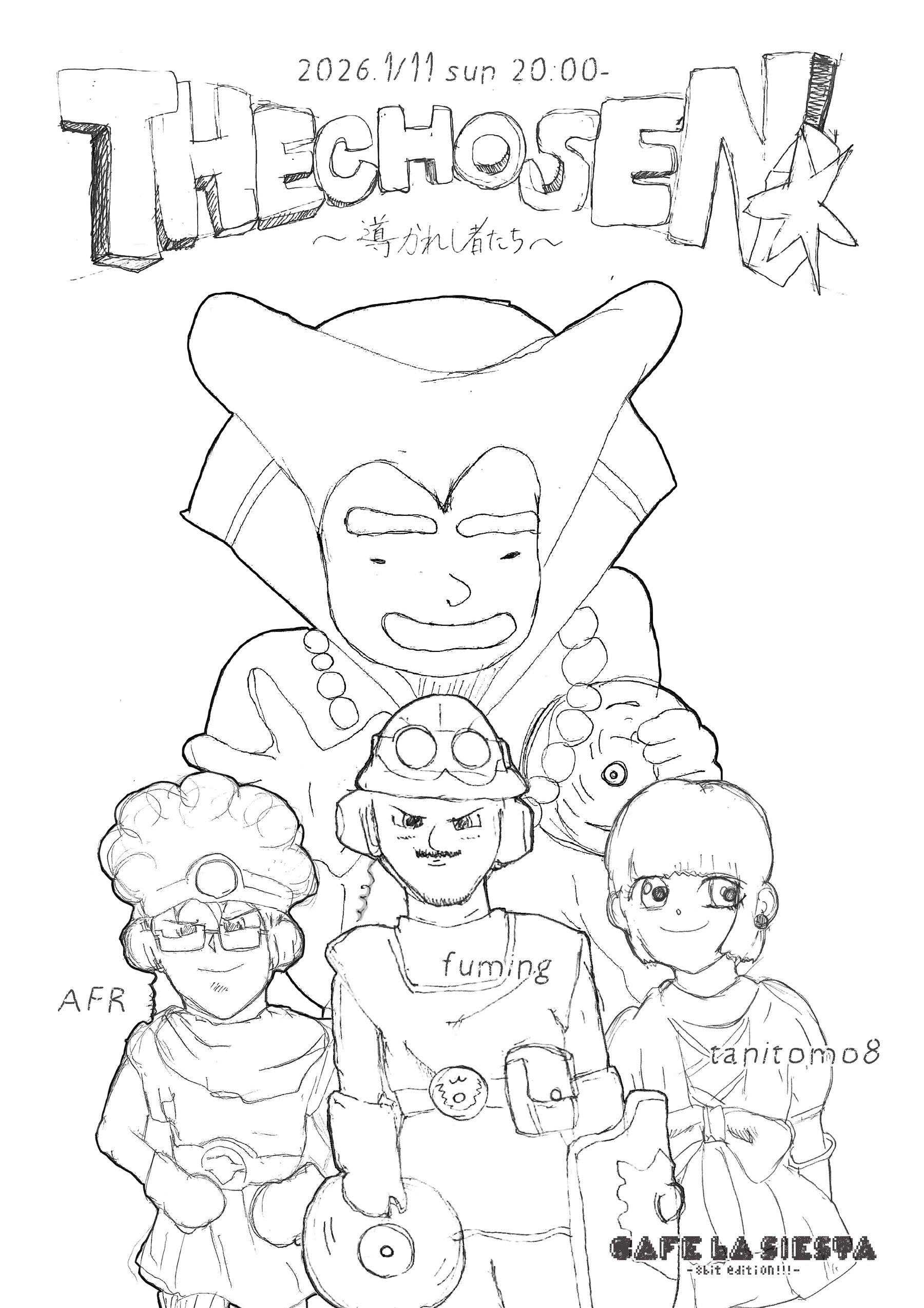 2026.01/11 (sun)The Chosen DJ:AFRfumingtanitomo8 20:00-no charge (plz 1d) venue: cafe la siesta – 8bit edition… →