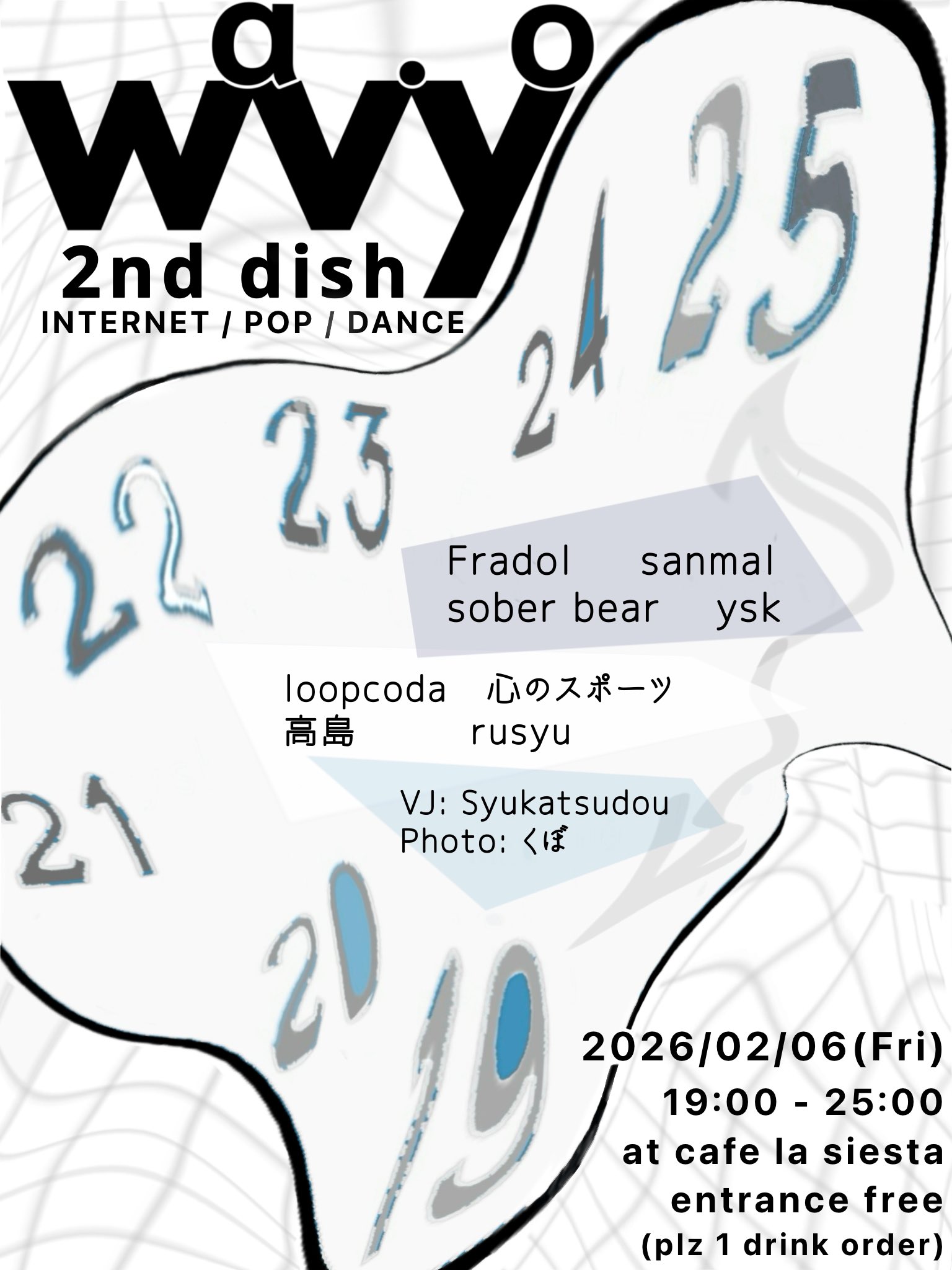 2026.02/06 (fri)wav.yo 2nd dish DJ:Fradolsanmalsober bearysk高島rusyu心のスポーツloopcoda VJ: Syukatsudou 19:00-25:00n… →