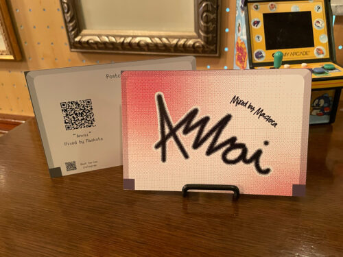 siesta8bitにまつわるDJ/トラックメーカーの音楽が記載のバーコードからダウンロードまたは視聴できるポストカードです。cafe la siesta店頭にて配布中。
